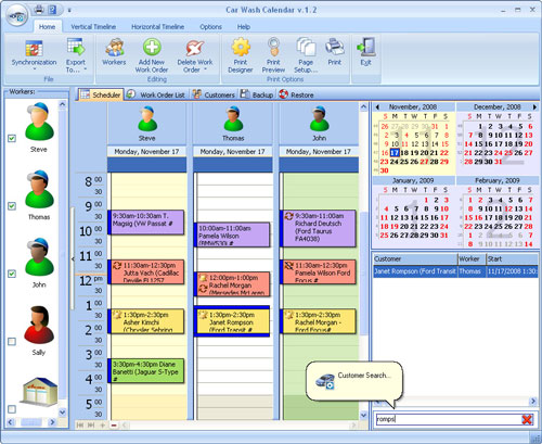 Car Wash Calendar là một phần mềm rất dễ sử dụng dành cho những người hoạt động trong ngành kinh doanh rửa xe. Công cụ phần mềm này giúp ích cho các công nhân rất nhiều trong việc lên lịch làm việc để không bị trùng với người khác cũng như để thao kịp lịch lam việc. Phần mềm này giúp lưu trữ các thông tin về khách hàng như địa chỉ, điện thoại, email và những nhận xét của họ. Chương trình hiện đại và dễ sử dụng này giúp cho việc quản lý trở nên thực sự dễ dàng. Chương trình này có giao diện tiện dụng để tính toán cũng như đưa ra các chi phí tính toán, giúp bạn đưa ra các quyết định nhanh chóng. Công cụ tiện ích nay còn có thể tạo ra các nhắc nhở để báo cho công nhân những công việc họ sắp phải làm.